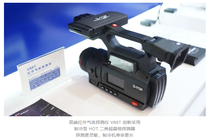 针对当前气体探测领域存在的反应速度慢、精度不高、稳定性差等痛点,飒特红外研发出高端红外气体探测仪V88T。相较其它类型气体探测手段,V88T采用的红外探测技术有着非接触、快速反应、可视化等明显优势;相较市面上现有红外气体探测产品,V88T又具备功耗低,寿命长,波段广的优点,这主要得益于其创新采用的制冷型HOT二类超晶格机芯。